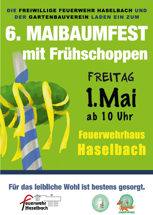 beliebten Maibaumfest auf dem Vorplatz des Feuerwehrhauses in Haselbach ein.