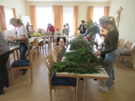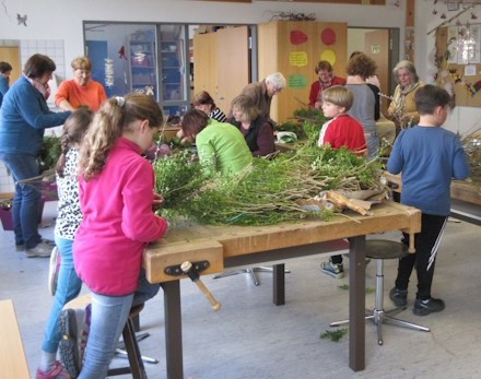 Dauer ca. 1,5 Std. Material ( Palmkätzchen, Grünzeug, Bänder, Bindedraht .. ) werden zur Verfügung gestellt.